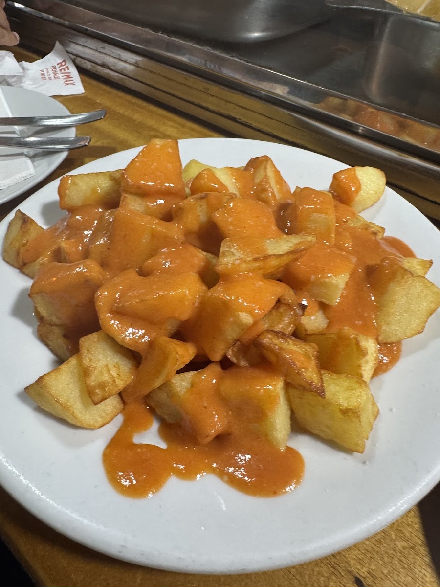 A small place at the back of a bar, but some of the best tapas we have tried in the area. Complimentary potatoes too, but the steak was a real beautiful dish. Everything was fresh. You know its a local favourite when it has poker players at the back.